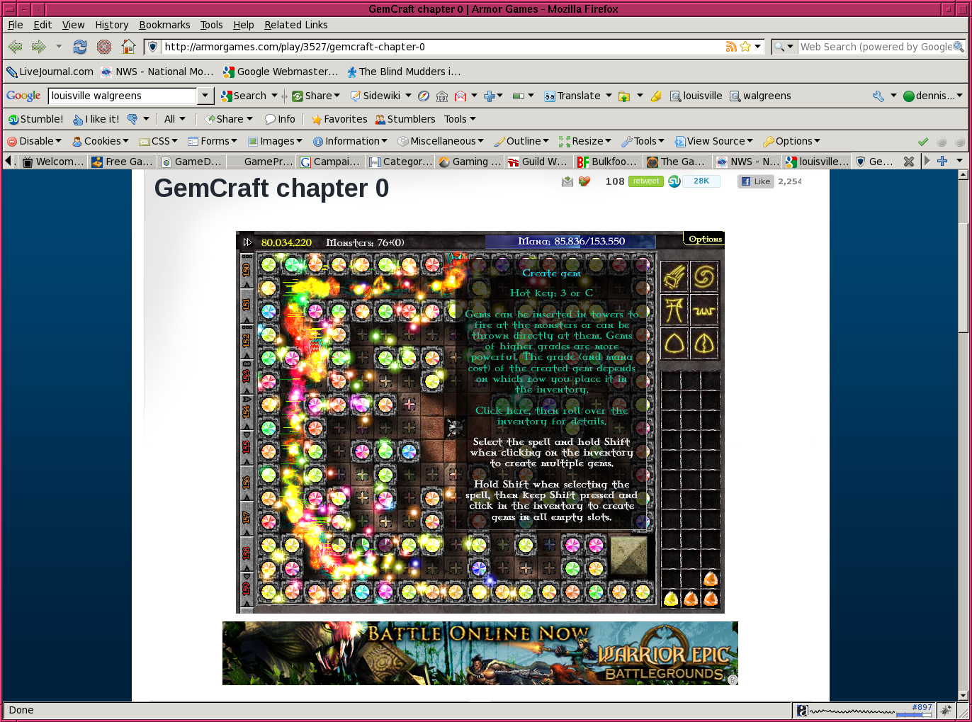 Abusing GemCraft (an Armor Games flash game)