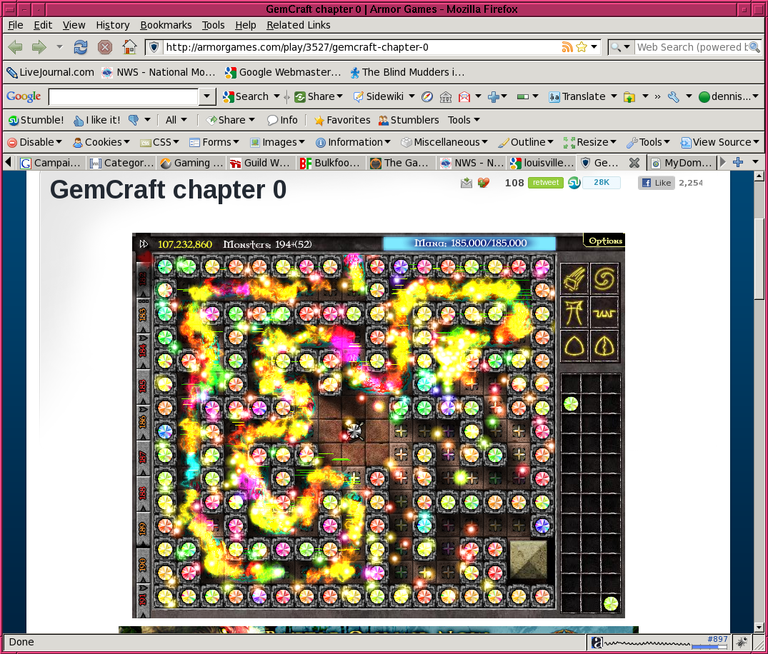 gems placed in towers. The gems shoot magical bolts at the monsters which